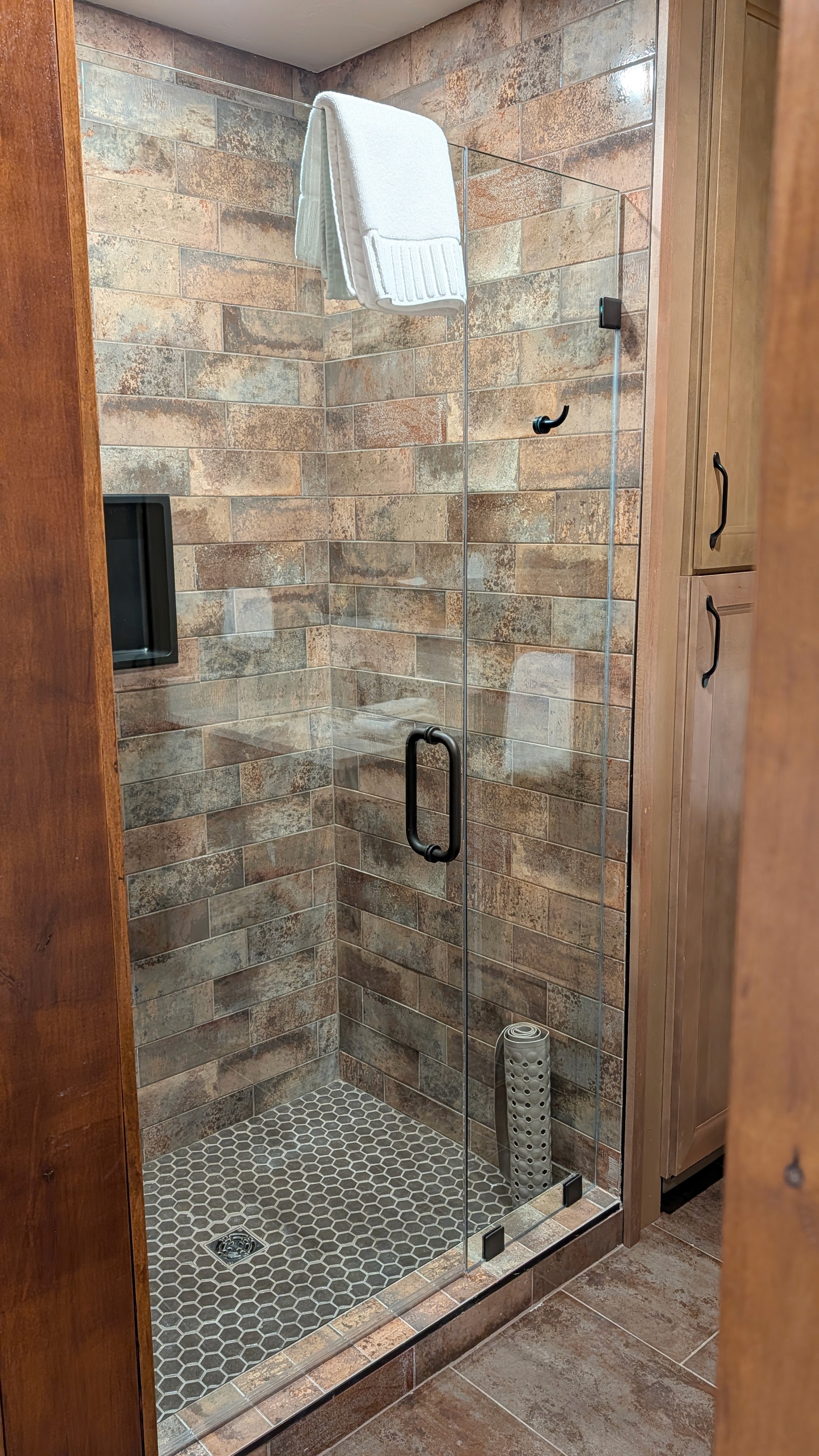 Inside, relax in a roomy king-size bed and enjoy the thoughtful touches that make a big difference—like a walk-in shower and cozy heated bathroom floors. Fresh 100% cotton towels and cozy robes are here to help you relax and feel at home.